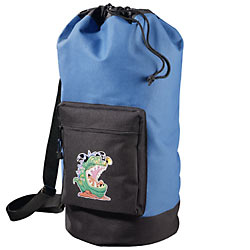 Great for travel or sport. This extra large 600d PolyCanvas drawstring duffel features: Zippered front compartment; Rear zipper for easy access to the main compartment; Adjustable shoulder strap.
