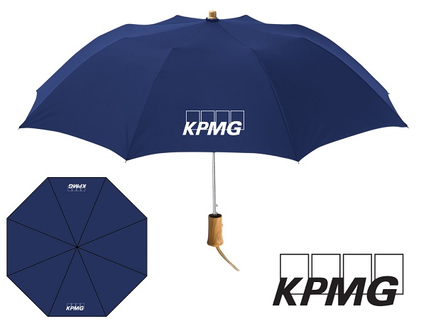 BR-730 Executive Folding Umbrella Navy Executive 43" automatic opening umbrella imprinted with the KPMG logo in white on two panels.Minimum to order: 25Please allow 5-7 business days for production***PLEASE NOTE: FREIGHT CHARGE IS ACTUAL FREIGHT QUOTED TO YOU AND WILL BE CHARGED WHEN ORDER IS SHIPPED AND BILLED*** Price: $11.95 ea.