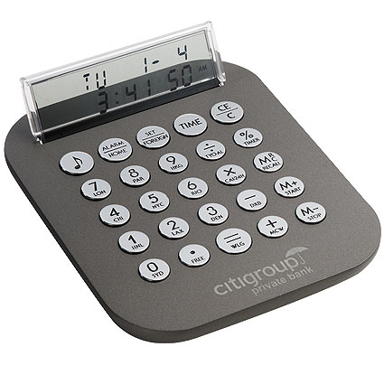 Ultra-modern calculator with space-age floating display screen. Seems like the numbers are magically suspended in air!