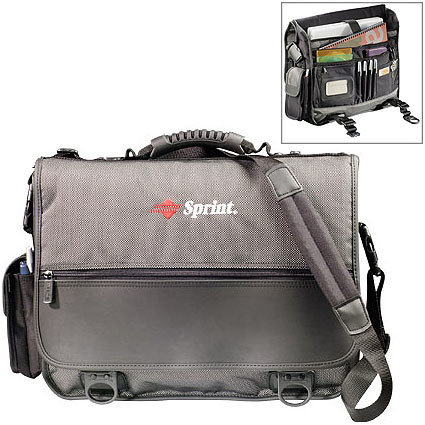 With its 1680 denier tech-weave material, this sack features: Padded computer pouch in the main compartment; High tech material and hardware; Exterior phone pocket; Deluxe organizer under flap for business essentials; Plastic snap closures on the flap:,Handle and a detachable and adjustable shoulder strap. Makes a nice, practical gift for employees or customers.