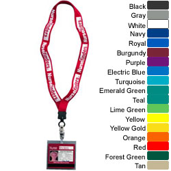 The classic tradeshow lanyard made of cotton tubing with standard "O" Ring attachment which is perfect for badges that have pins or metal bulldog clips. There are 7 optional attachments (add'l charges apply). Shown with optional vinyl strap and bulldog clip. Badge not included. Non-conductive, static free. Size: 1" x 16" on each side. Item does not include badge which is sold separately. Black and White imprint colors are recommended.