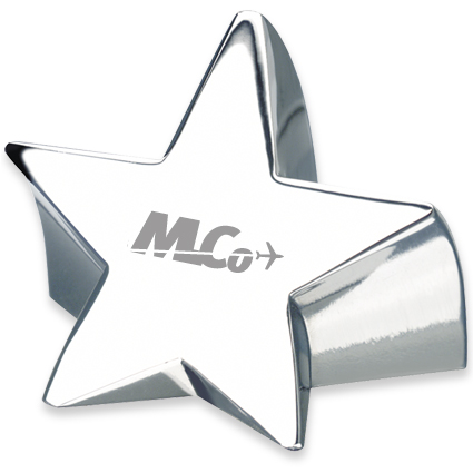 This tasteful star paperweight is sure to stay on your recipient's desk for years to come. This substantial nickel finished paperweight has a grey felt bottom, to prevent scratching or scuffing on any surface. Size: 2-1/2" square x 2-1/4" d.