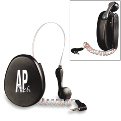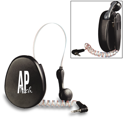 Retractable Cellular Headset This handy retractable headset is the answer for anyone who uses their cell phone while driving. This item has a retractable cord that shortens to the perfect length to avoid any messy tangles while driving. It also has a handy belt clip so you can enjoy hands free cellular use anywhere. A fantastic item your customers and employees will use everyday. Compatible with Motorola phones. Nokia and Ericcson adapters are available. Black only. Price: $13.77 ea. Tier 1 Price: $13.77 ea. (50 pcs.)Tier 2 Price: $13.23 ea. (100 pcs.)Tier 3 Price: $12.75 ea. (250 pcs.)Tier 4 Price: $11.87 ea. (500 pcs.)Tier 5 Price: $11.47 ea. (1000 pcs.)Setup Charge: $35.00