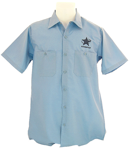 Petrol Blue Short Sleeve Industrial Work Shirt embroidered with Landstar logo in Navy. WHILE SUPPLIES LAST