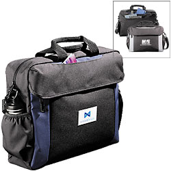 Perfect bag for laptops and business essentials; they'll take this bag and your logo everywhere! Made of 300d PolyCanvas, this bag features: Zippered front pocket and open back pocket; Side pockets for phone and water bottle; Multiple pockets for business essentials; Jotter and matching pen; Detachable/adjustable shoulder strap.