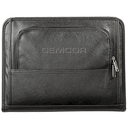 Made of DuraHyde a strong durable faux-leather material. This item features a removable 1-1/2" three-ring binder, a deluxe front and interior organizers, an 8-1/2" x 11" writing pad, zippered closure, and an optional calculator.