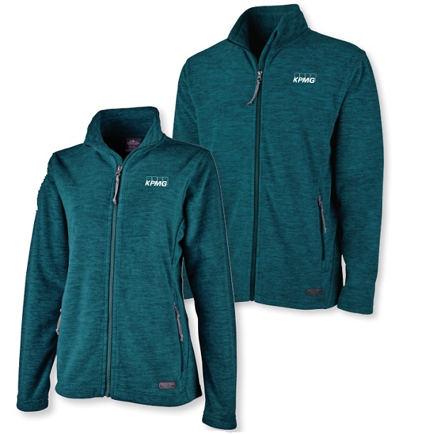 Mens and Ladies Teal 100% polyester Boundary™ anti-pill filament fleece. Made from a very fine yarn for extra softness and comfort. Full zip styling with contrast color zipper & top-stitching accent design details Unique sheared, low pile surface for a modern look, provides warmth without the bulk of conventional fleece. Self-fabric mock neck, wind flap and chin guard for added protection from the elements. Ladies style features princess seams for a feminine silhouette.