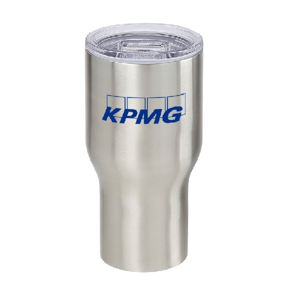 30 oz Arctix™ Vacuum Tumbler Keeps Ice for over 48 hours Made with FDA compliant dual walled 18-8 Stainless Steel Copper lined, vacuum insulated deep draw liner will maintain optimal drinking temperature’s BPA Free Includes a sweat-free design and see-through screw-on lid. Imprinted with KPMG logo. Product Size: 8 1/4"h x 3 7/8"w x 3 7/8"d Packaging: Drawstring Pouch NOTE: Hand Wash Only.