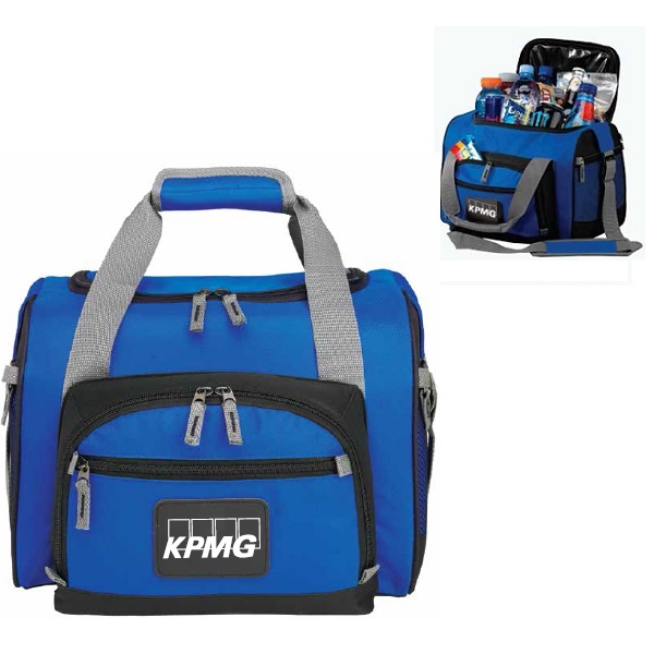 Fully insulated, waterproof main compartment holds 12 cans. Cooler lining is removable for multi-use functionality. Two large zippered front pockets for extra storage. Two zippered end mesh pockets. Padded handle wrap and adjustable non-slip shoulder strap. Material: 600 Denier Polyester Dimensions: 12.5"L x 10"W x 9.5"H Contents in bag not included.