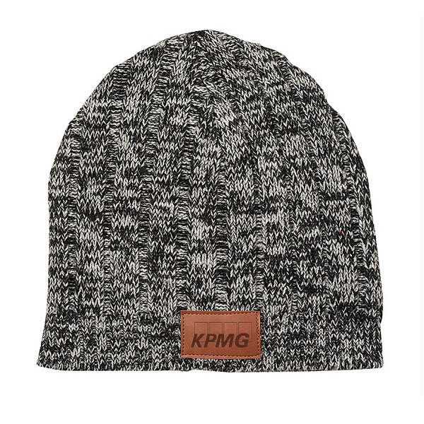 BR-1529 Heathered Knit Gray Beanie Heathered Acrylic blend knit beanie with PU faux leather patch on front cuff debossed with KPMG logo.Hand-wash only. Do not iron.Please see BR-1528 for matching scarf.Minimum to order: 25Please allow 7 business days for production***PLEASE NOTE: FREIGHT CHARGE IS ACTUAL FREIGHT QUOTED TO YOU AND WILL BE CHARGED WHEN ORDER IS SHIPPED AND BILLED*** Price: $9.99 ea.