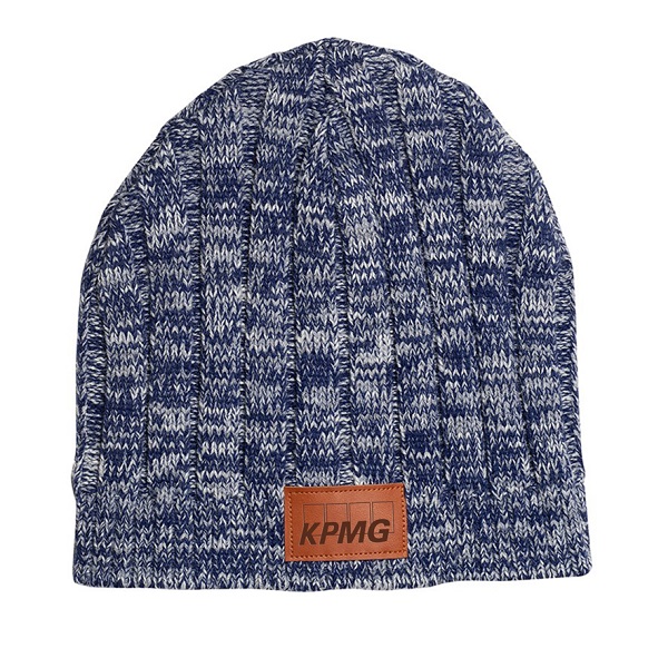BR-1530 Heathered Knit Navy Beanie Heathered Acrylic blend knit beanie with PU faux leather patch on front cuff debossed with KPMG logo.Hand-wash only. Do not iron.Minimum to order: 25Please allow 7 business days for production***PLEASE NOTE: FREIGHT CHARGE IS ACTUAL FREIGHT QUOTED TO YOU AND WILL BE CHARGED WHEN ORDER IS SHIPPED AND BILLED*** Price: $9.99 ea.
